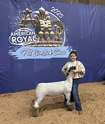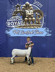 Very top end placings in shows attended plus a very rewarding year in showmanship classes. Watch for this natural ewe in 2026 Breeding Ewe classes. Congratulations!